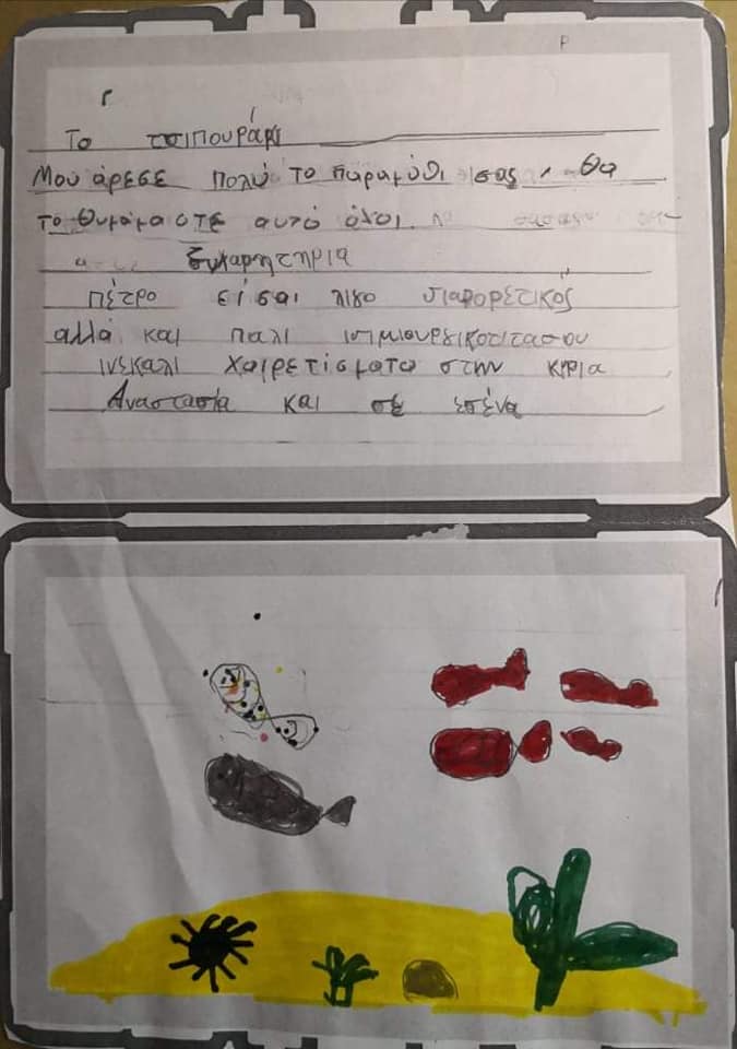 Το τσιπουράκι ταξίδεψε εκτός Ευρυτανίας. Παρουσιάστηκε σε παιδιά δημοτικού. Ευχαριστώ από καρδιάς την εκπαιδευτικό κα Αναστασία Κόντσιογλου Παραθέτω παρακάτω ότι μου έστειλε η εκπαιδευτικός και αυτά που έγραψαν τα παιδιά. Στο πλαίσιο των Εργαστηρίων Δεξιοτήτων με θέμα τη διαφορετικότητα τα παιδιά της Γ'τάξης ενθουσιάστηκαν με το βιβλίο της κας Αναστασίας Κριπάση-Μπάρκα "Το τσιπουράκι". Έμαθαν πολλά καινούρια πράγματα. Κατανόησαν τη διαφορετικότητα, ευαισθητοποιήθηκαν και κατάλαβαν ότι όλοι είμαστε ίδιοι, ακόμη κι αν είμαστε διαφορετικοί. Τα μηνύματα των παιδιών προς τη συγγραφέα είναι μέσα από την καρδιά τους, καθώς έγραψαν αυτό ακριβώς που ένιωθαν. Με αφορμή το βιβλίο γνώρισαν τον Πέτρο, έμαθαν για τη ζωή του και του έστειλαν την αγάπη τους!!!